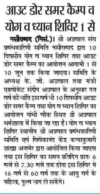 आउटडोर समर कैंप व योग ध्यान शिविर 1 से