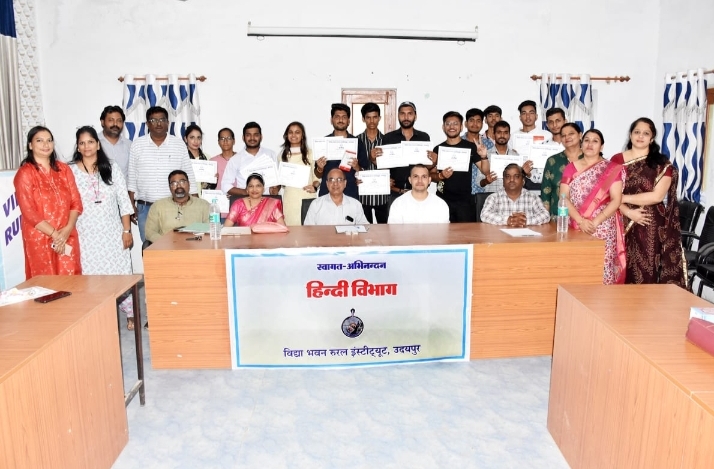 *विवेकानंद केंद्र कन्याकुमारी विभाग उदयपुर द्वारा विद्या भवन रूरल इंस्टीट्यूट उदयपुर विमर्श कार्यक्रम का आयोजन रखा गया जिसमें मुख्य वक्ता श्री दीपक जी पुरोहित* स्वामी ने अपने उदबोधन में युवाओं को अपने लक्ष्य की प्राप्ति के लिए एकाग्रता से प्रयास करने हेतु प्रेरित किया। आपका कहना हैं कि हमे मानने से ज्यादा जानने पर बल देना चाहिए, युवा हर चीज़ को मान लेते है कि ऐसा ऐसा हुआ होगा, वास्तव में युवाओं को मानने की बजाय जानना जरुरी है कि अमुख कार्य कैसे हुआ है । आपने अपने वक्तव्य में कहा कि युवा चाहे किसी भी क्षेत्र को चुने , जरूरी यह हैं कि आप उसका गहराई से अध्ययन करे । आपने अपने वक्तव्य में स्वामी विवेकानंद जी के जीवन से जुड़े प्रसंगों को उद्धरित करके युवाओं के सामने एक ओजस्वी ओर प्रेरणादायी व्याख्यान दिया। कुल संख्या 70 रही।