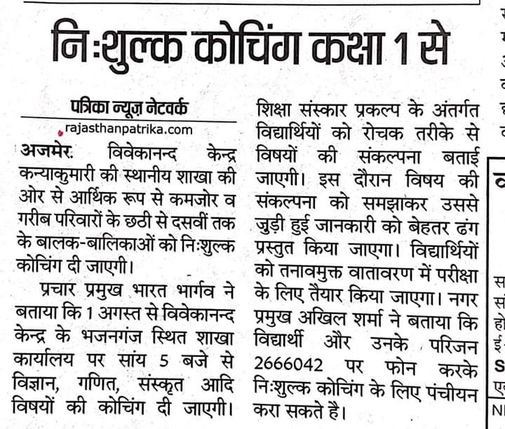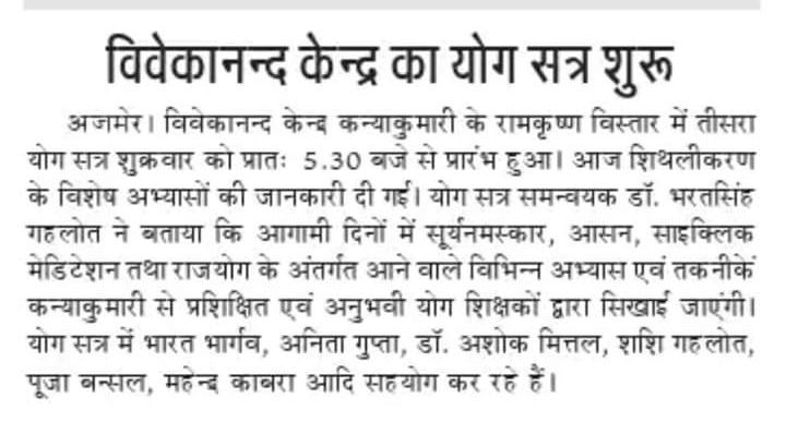 Vivekananda Kendra, Kanyakumari – Rajasthan Prant