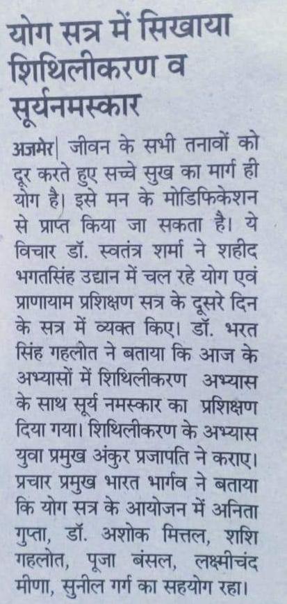 योग सत्र में सिखाया शिथिलीकरण व सूर्य नमस्कार