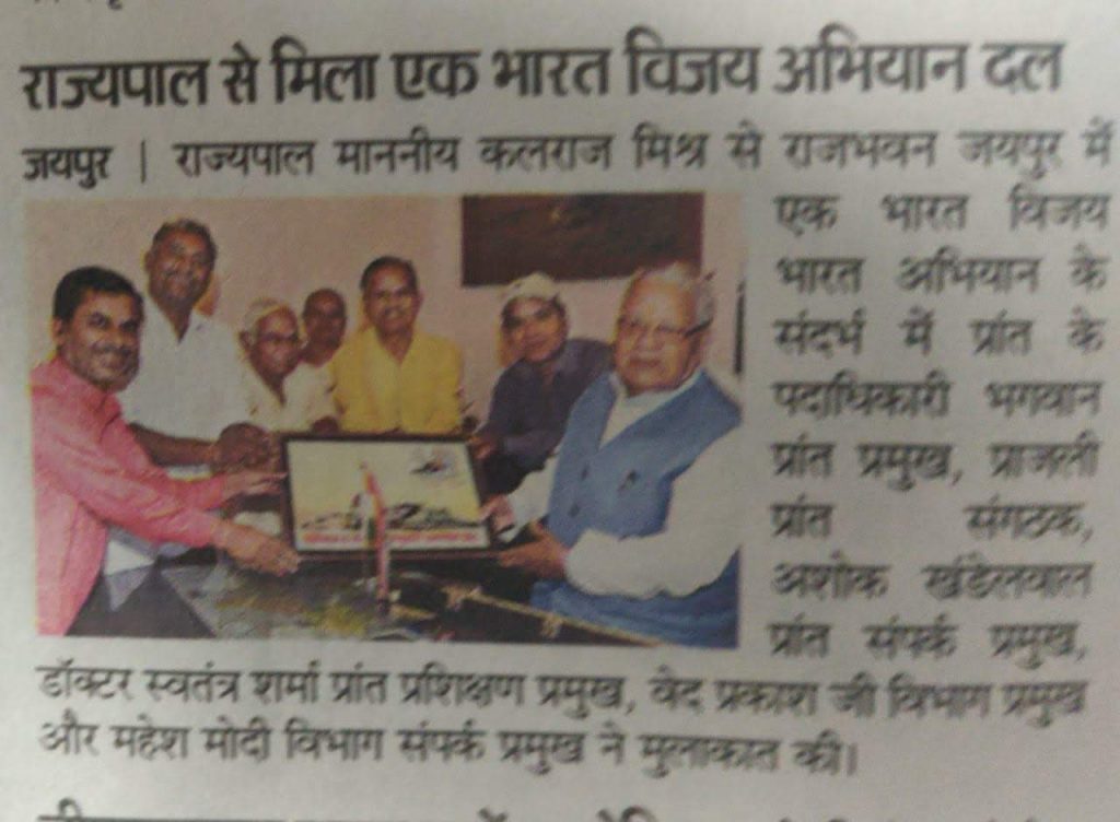 राज्यपाल से मिला यह भारत विजय अभियान दल